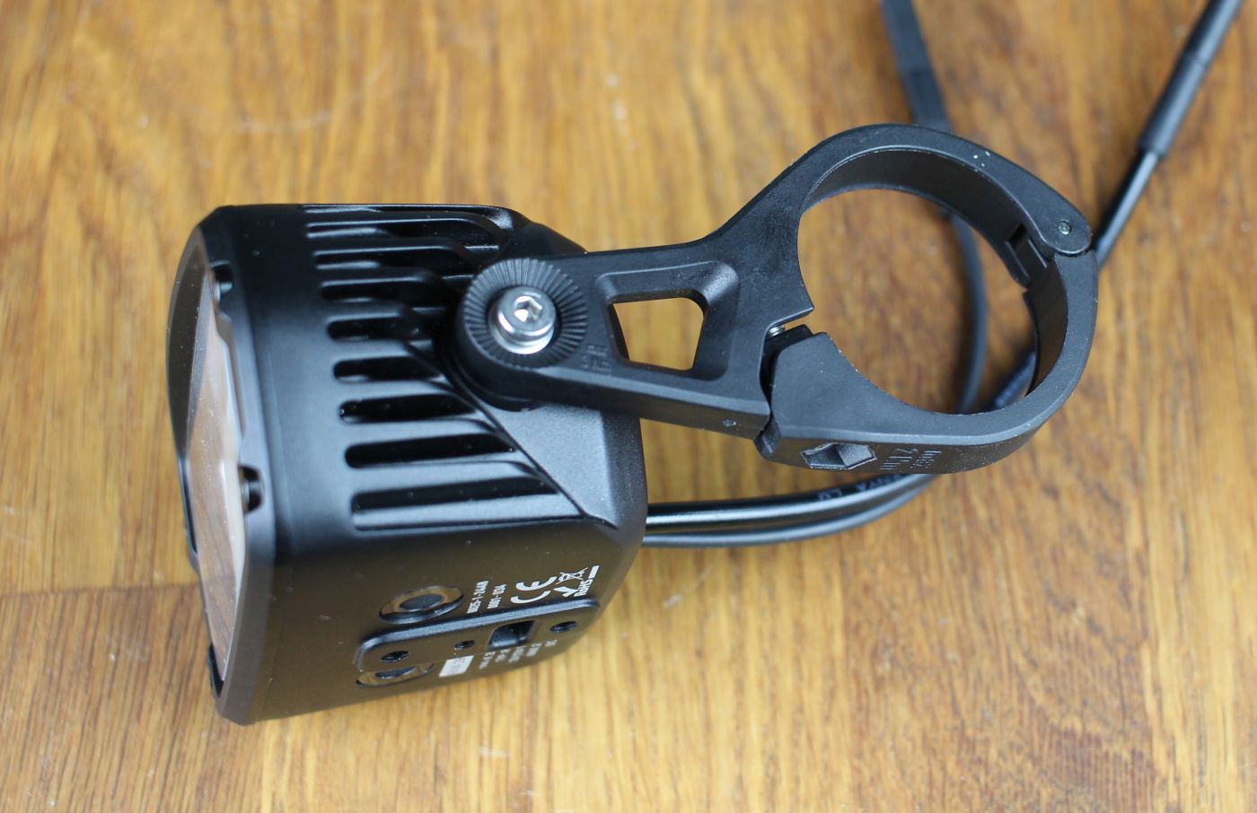 Der Scheinwerfer ist für 12 V Lichtanschlüsse gedacht. Auch der zweite Anschluss muss mit 12 V betrieben werden. Genauer gesagt ist laut Anleitung eine Spannung zwischen 11 und 16 V zulässig. Eigene Tests haben aber ergeben, dass 11 V scheinbar schon etwas knapp sind, erst bei 11,5 V wurde bei Fernlicht die maximale Lichtleistung erreicht. Eine Anfrage beim Hersteller hat übrigens ergeben, dass eine Spannung von 16,8 V wohl auch noch in Ordnung ist (= 4 volle Li-Ion-Zellen in Reihe, 4× 4,2 V = 16,8 V). Das wird relevant, wenn man den Scheinwerfer nicht am E-Bike sondern an einem Akkupack betreiben will. (Die Verwendung mit Spannungen über 16 V erfolgt natürlich auf eigene Gefahr, weder ich noch der Hersteller übernehmen dafür eine Garantie).