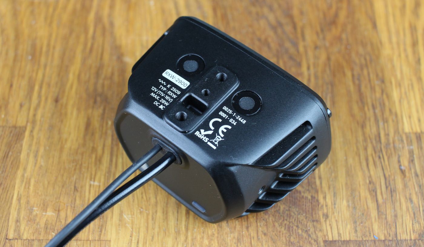 Die Helligkeit ist gerade vorne extrem hoch. Allerdings wirkt sie in der Realität nicht so überblendet wie hier im Foto, das Auge gleicht die unterschiedlichen Helligkeiten doch noch besser aus. Leider nimmt die Helligkeit im Fernbereich dann relativ stark ab. Eine Beleuchtungsstärke von 140 Lux verdeutlicht das. Dieser Wert wird in 10 m Entfernung am hellsten Punkt des Lichtkegels gemessen. Dieser hellste Punkt des Lichtkegels trifft dann im Fernbereich auf die Straße (weit mehr als 10 m entfernt und dann deutlich weniger als 140 Lux hell). 140 Lux sind absolut für einen Fahrradscheinwerfer zwar kein niedriger Wert, aber andere hochwertige Lampen schaffen doch teils noch einiges mehr. Wenn man bedenkt, dass die Lampe einen Gesamtlichtstrom von 1665 Lumen erzeugt, der seinesgleichen sucht und im Nahbereich zudem extrem hell ist, sind 140 Lux doch eher wenig. Und das zeigt sich auch in der Praxis: während die Sicht mit der RXW-2900 im nahen und mittleren Bereich sehr gut ist, ist sie im Fernbereich nur durchschnittlich.