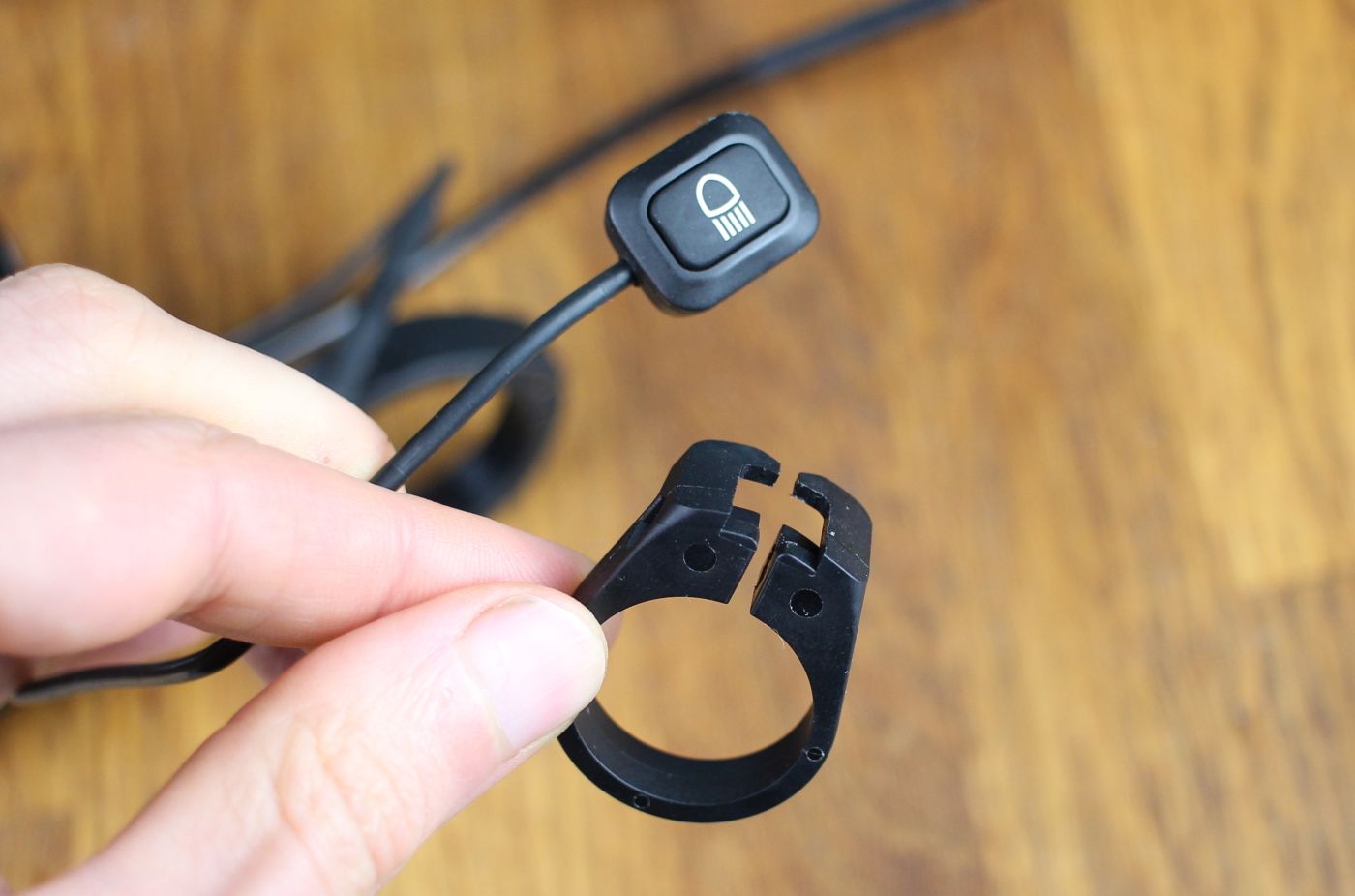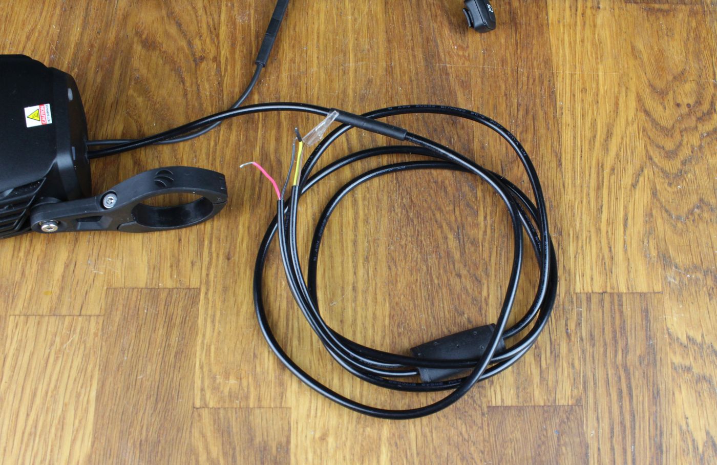 Der Lenkertaster zur Aktivierung des Fernlichts ist am Gehäuse mit einem Kabel befestigt, welches sich auch an einem Steckverbinder trennen lässt. Die Gesamtlänge des Kabels beträgt ca. 30 cm.