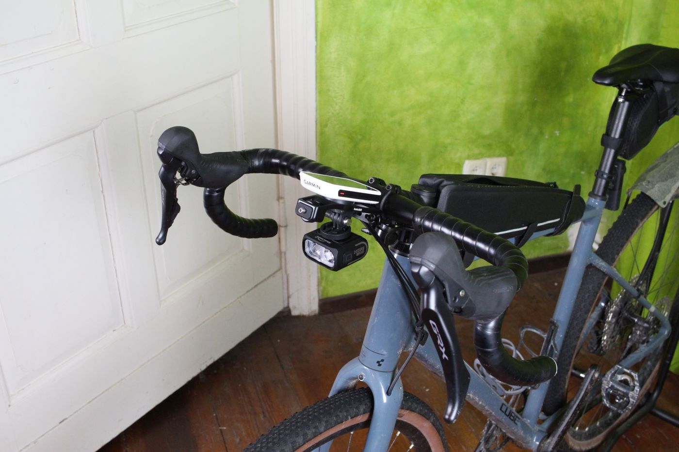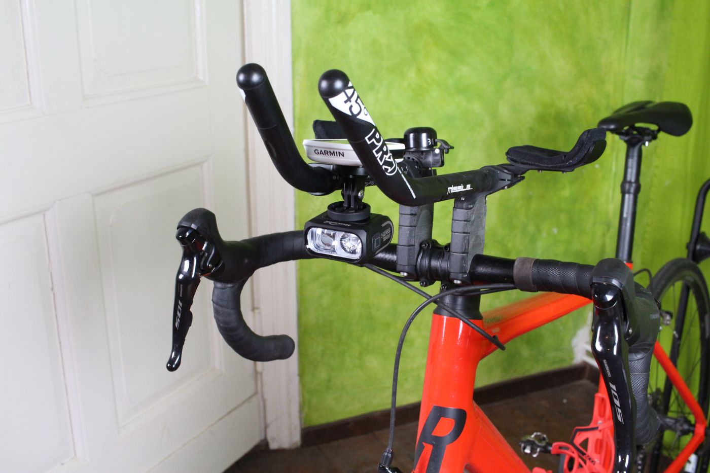 Hier am Rennrad unter dem Tacho am Auflieger montiert.