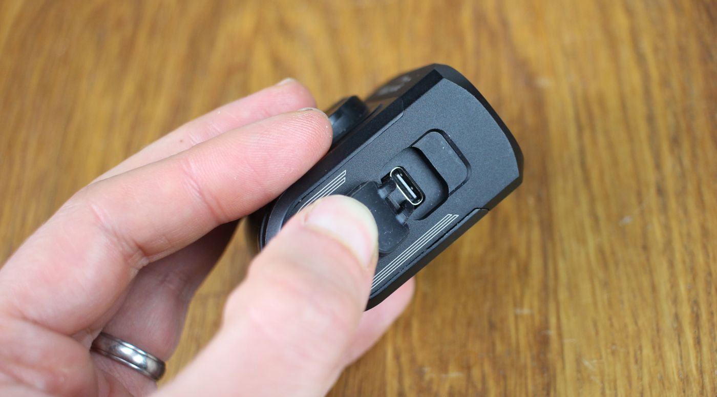 Auf der rechten Seite unter einer Gummiabdeckung der USB-C Ladeanschluss. Mitgeliefert wird ein USB-A auf USB-C Ladekabel. Die Lampe lädt aber auch an USB-C auf USB-C Kabeln, was bei manch anderer Lampe leider nicht funktioniert.