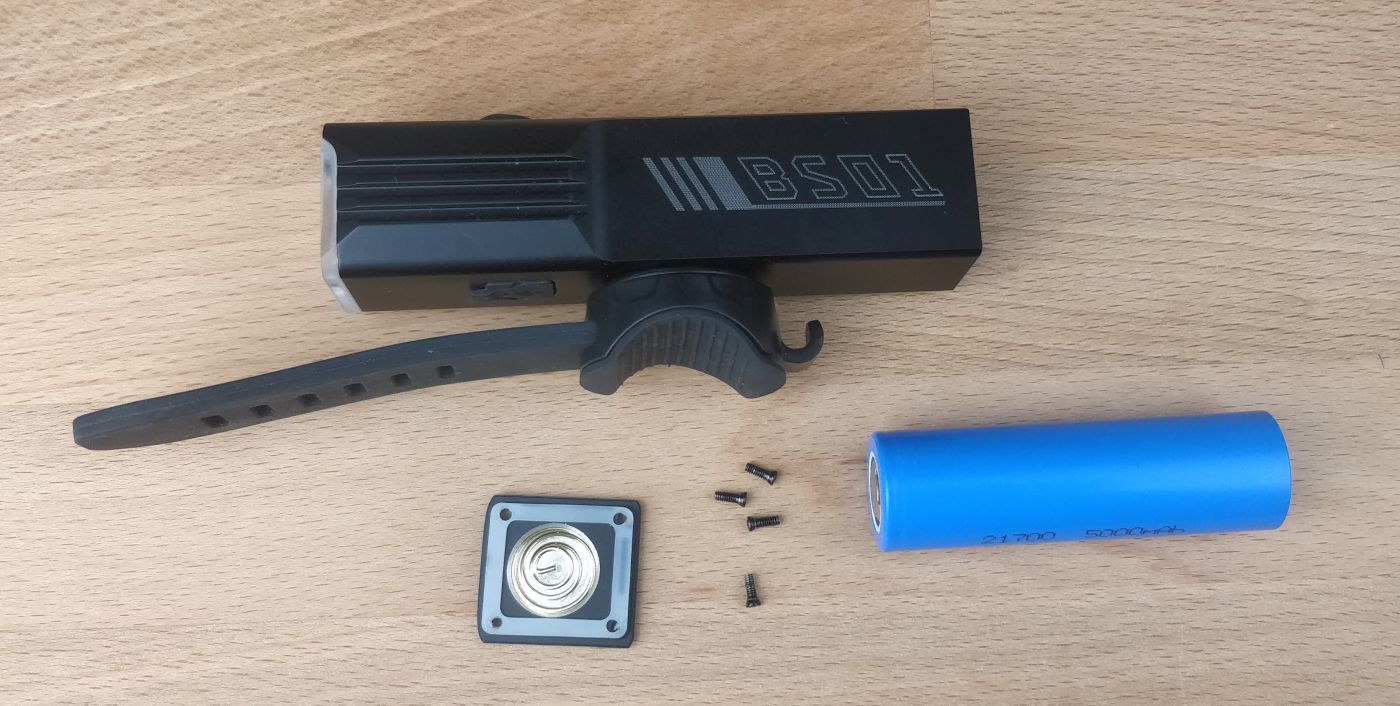 Im Inneren befindet sich ein Akku in der Standard-Baugröße 21700. Dieser kann also bei Bedarf leicht getauscht werden. Ein nicht zu unterschätzender Vorteil der Sofirn BS01. Denn der Akku begrenzt oft die Lebensdauer von elektronischen Geräten. Und bei vielen anderen Fahrradlampen ist ein Wechsel nicht oder nur schwer möglich.