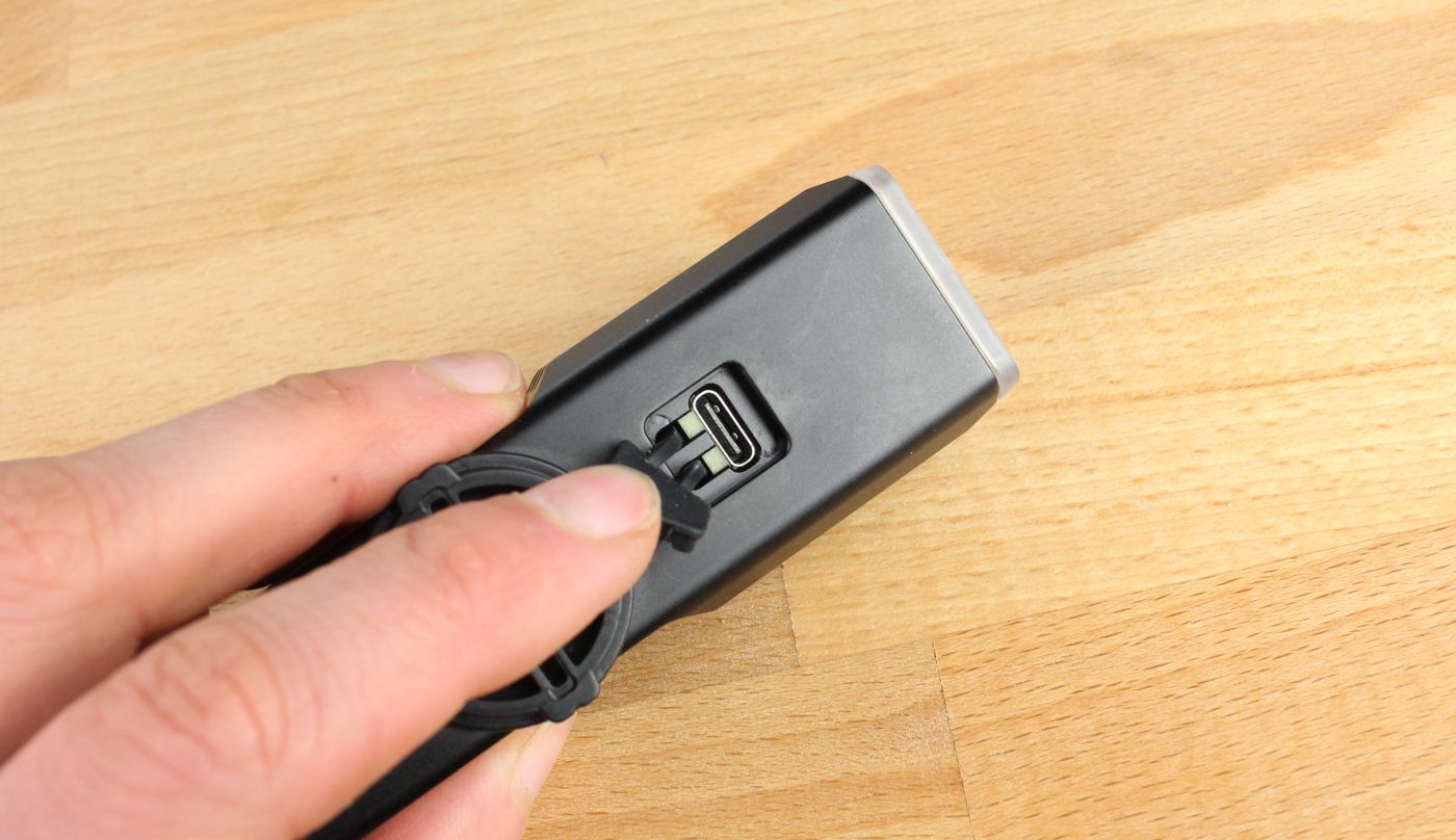 Nutzen kann man die BS01 übrigens auch als Powerbank. Steckt man ein USB-C zu USB-C Kabel ein, lassen sich mit ihr andere Geräte laden – auch während die Lampe eingeschaltet ist.