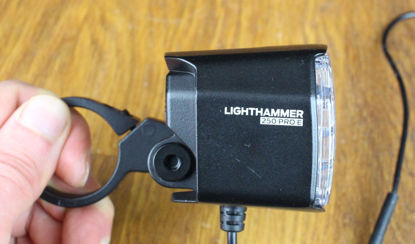 Der Lenkerhalter ist aus Aluminium ausgeführt und hält die Lampe stabil am Lenker. Mitgeliefert werden zwei Halter, für 31,8 und 35 mm Lenkerdurchmesser. Außerdem dabei ist ein Faceplate-Adapter (aus Kunststoff), der bei entsprechender Montagemöglichkeit verwendet werden kann.